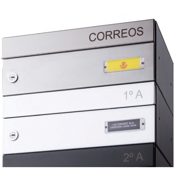 Personalizzazione della porta o sportello della buca delle lettere tramite incisione laser del testo desiderato, di solito l'identificazione dell'abitazione.