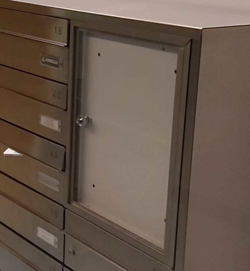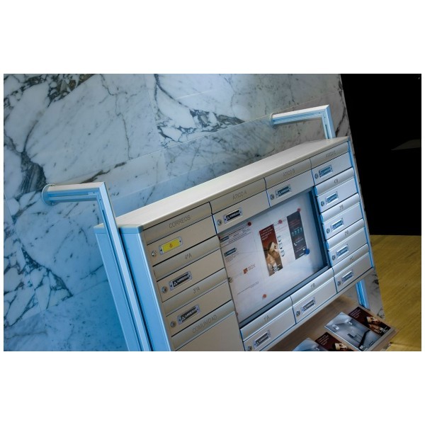 Negli aggregati di cassette postali orizzontali è possibile integrare pannelli pubblicitari, utili per affiggere notifiche per la comunità di condomini.