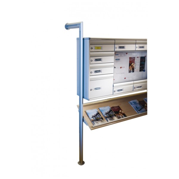 Sostegno a parete in alluminio: 1800 mm di altezza x 35 mm di lunghezza x 65 mm di profondità. Con doppio fissaggio, avvitabile a terra e a parete. Design innovativo che lascia il raggruppamento delle cassette postali sospeso, separato dal muro di 265 mm.