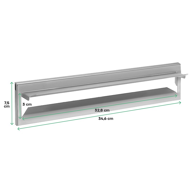 • DIMENSIONI: 34,2 x 7,3 cm (larghezza x altezza); bocca di 32,5 x 3 cm (larghezza x altezza).