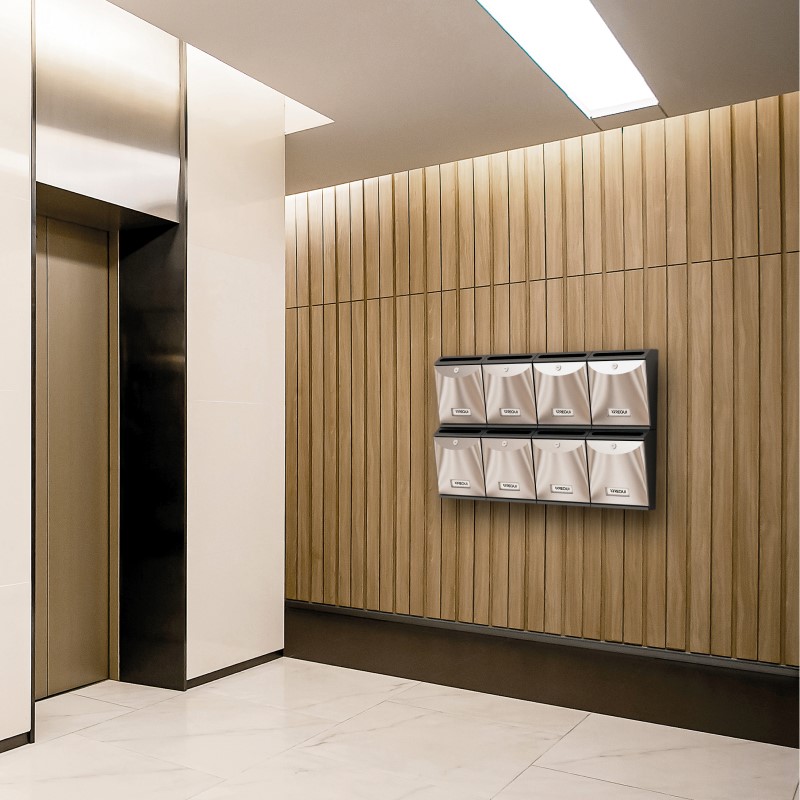 Il casellario Future è una buca delle lettere antivandalica per interni con scivolo anti-pesca.