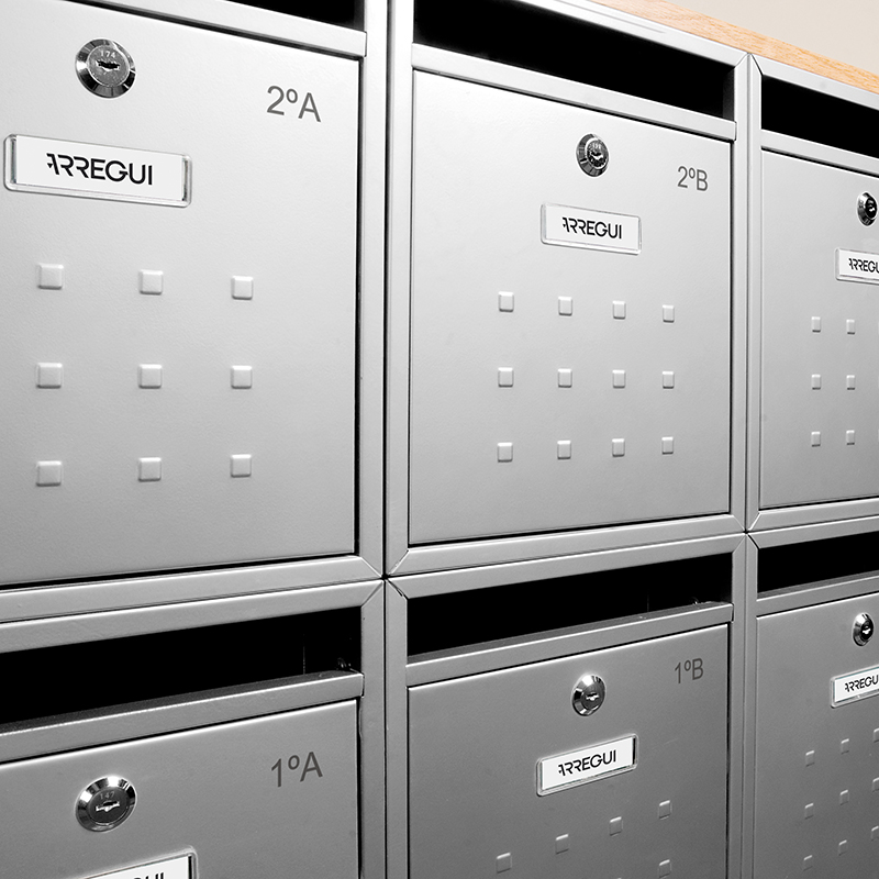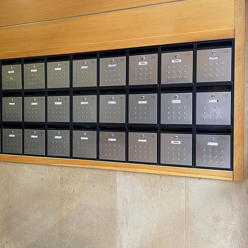 Il buzon Mira è un buzon verticale con un bel design geometrico sulla sua porta, adatto per portali che vogliono sfruttare al massimo lo spazio disponibile.