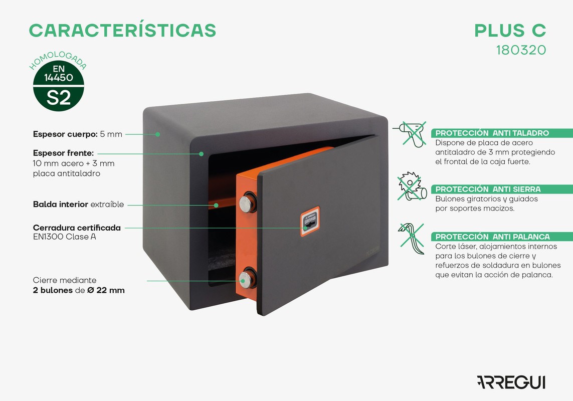 Plus C Chiave - Cassaforte da sovrapporre con serratura a chiave, certificata Grado S2, frontale di 10+3 mm.