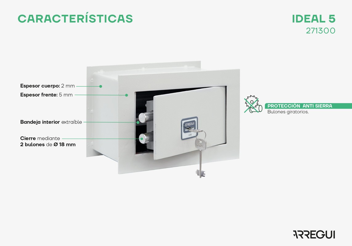 Ideal5 Chiave - Cassaforte da incasso a parete con serratura a chiave, frontale da 5 mm e taglio laser.