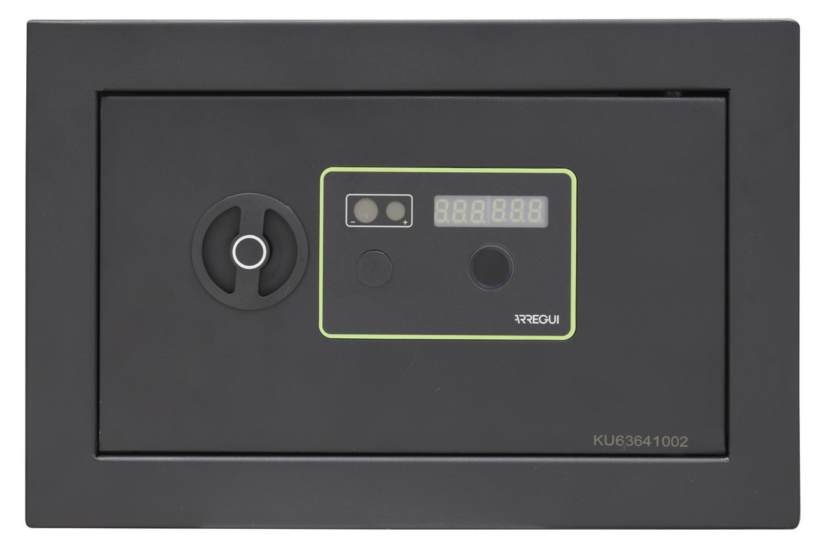 - Serratura elettronica con lettore di impronte digitali. Una volta che il lettore scansisce un'impronta registrata, la cassaforte può essere aperta girando la maniglia.