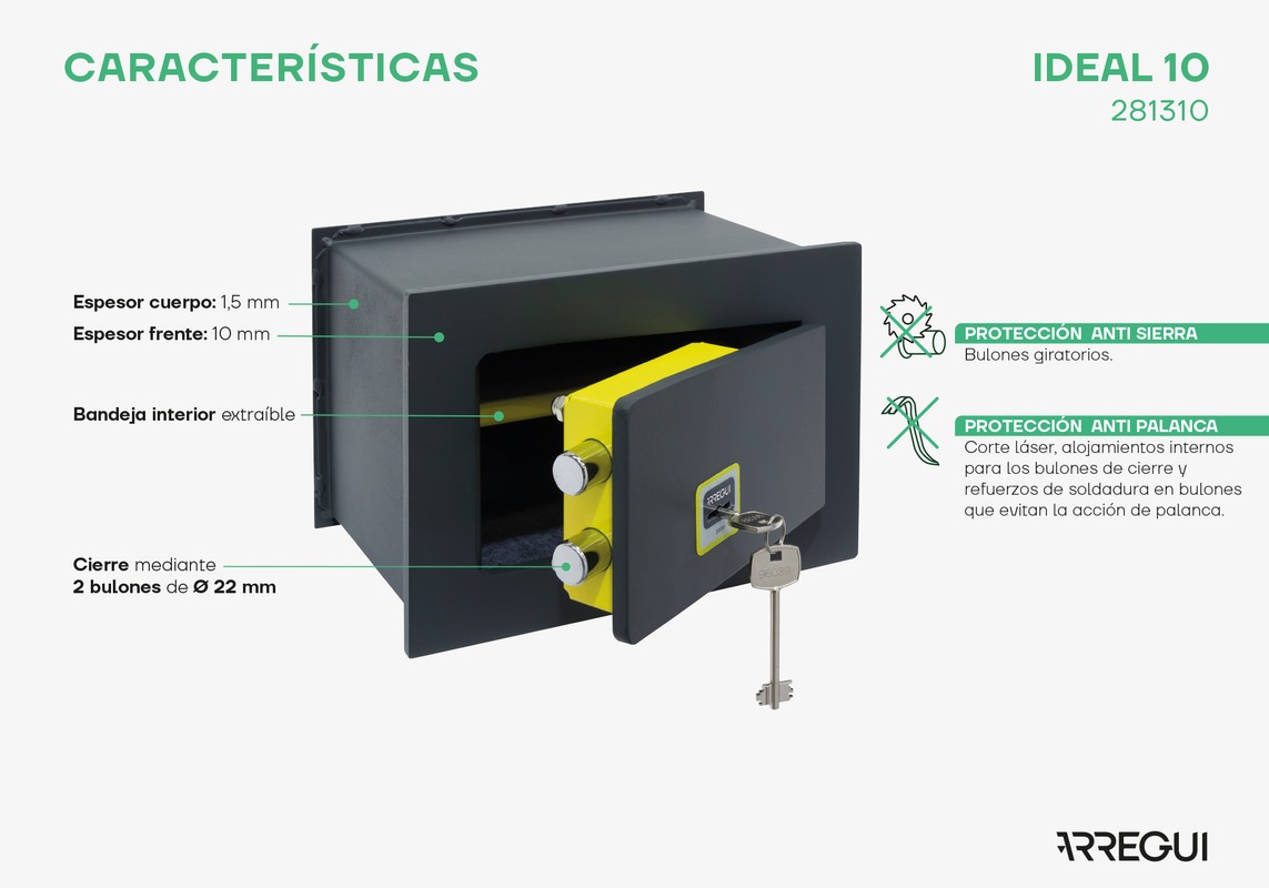 Ideal10 Chiave - Cassaforte ad incasso con serratura a chiave, frontale da 10 mm e taglio laser