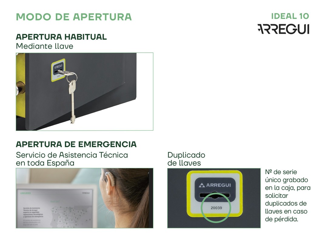 ARREGUI dispone di una rete di Servizio di Assistenza Tecnica specializzata su tutto il territorio nazionale per qualsiasi incidente relativo alla sua cassaforte ARREGUI.