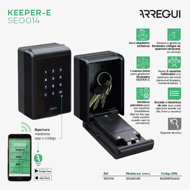 Keeper-E - Portachiavi intelligente, Cassaforte per Chiavi per Appartamenti Turistici, Cassaforte per Chiavi con Bluetooth e App Mobile